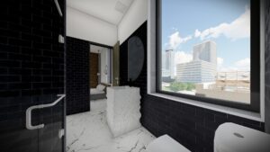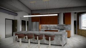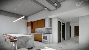 For this mixed-use building, we produced 3D renderings that highlighted the potential of the residential, med spa, salon, and Airbnb spaces. These visuals were instrumental in marketing, construction planning, and real estate visualization.